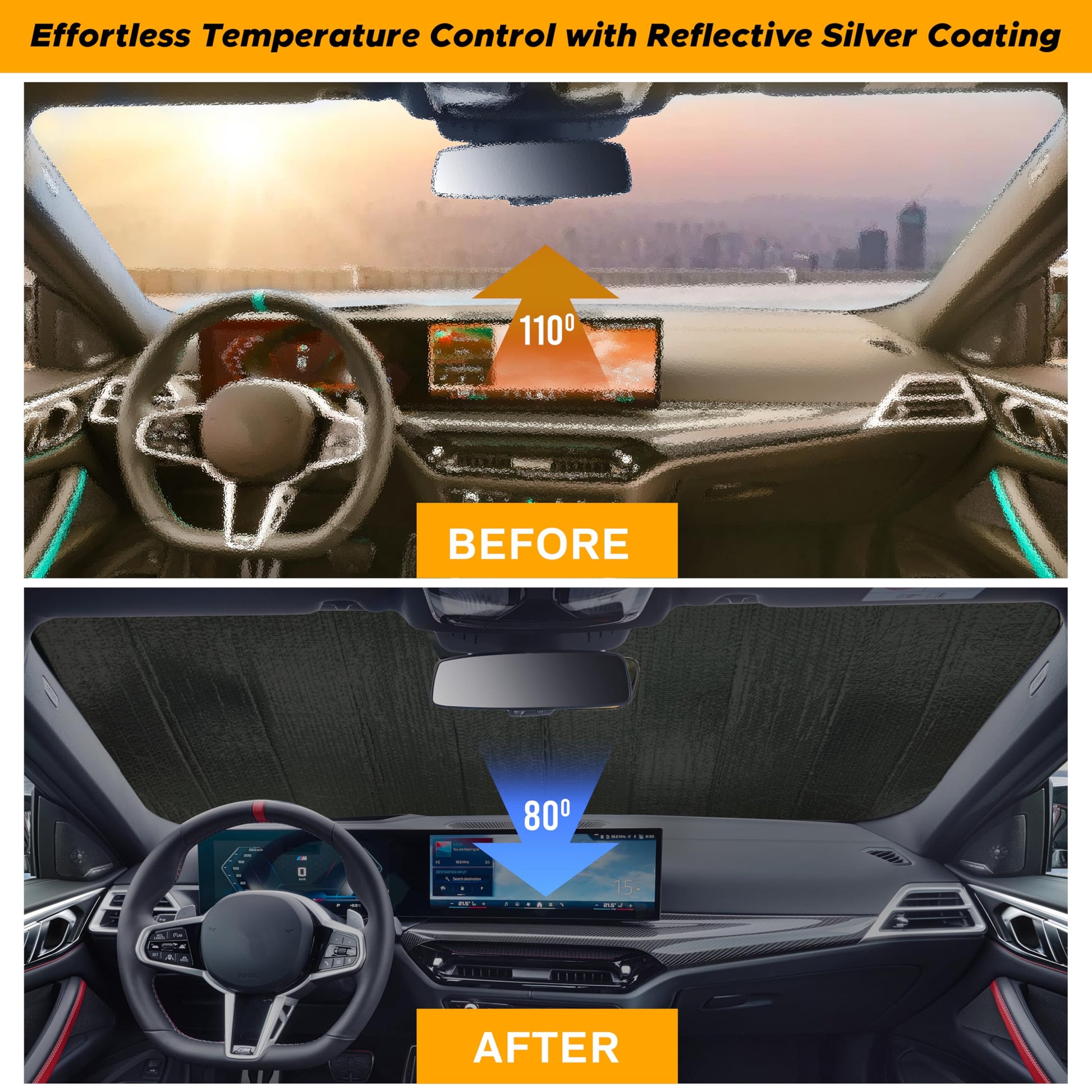 Accordion Windshield Sun Shade Foldable | Large (58"x28") | EcoNour