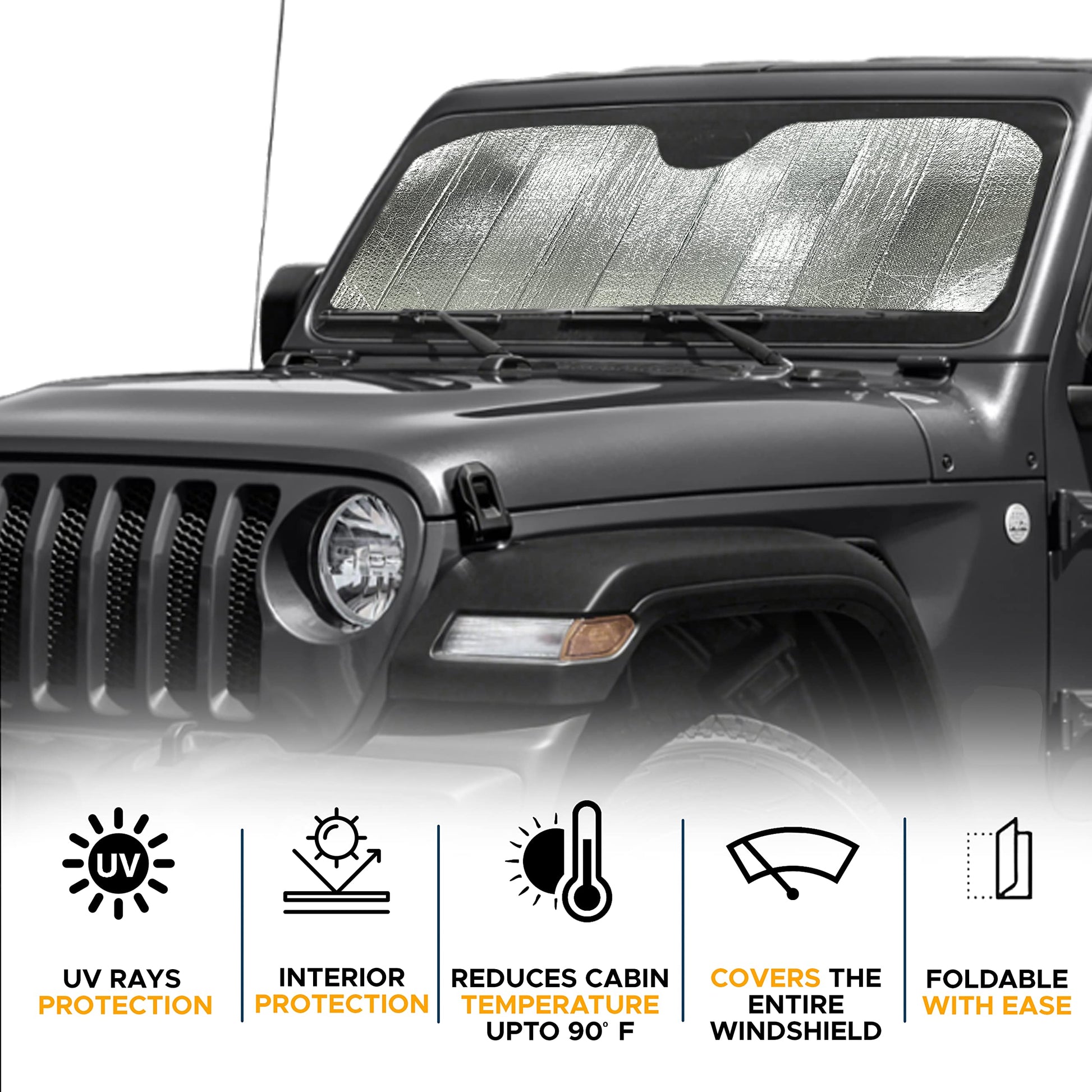 Accordion Windshield Sunshade for Jeep Wrangler | EcoNour XS (53"x17")