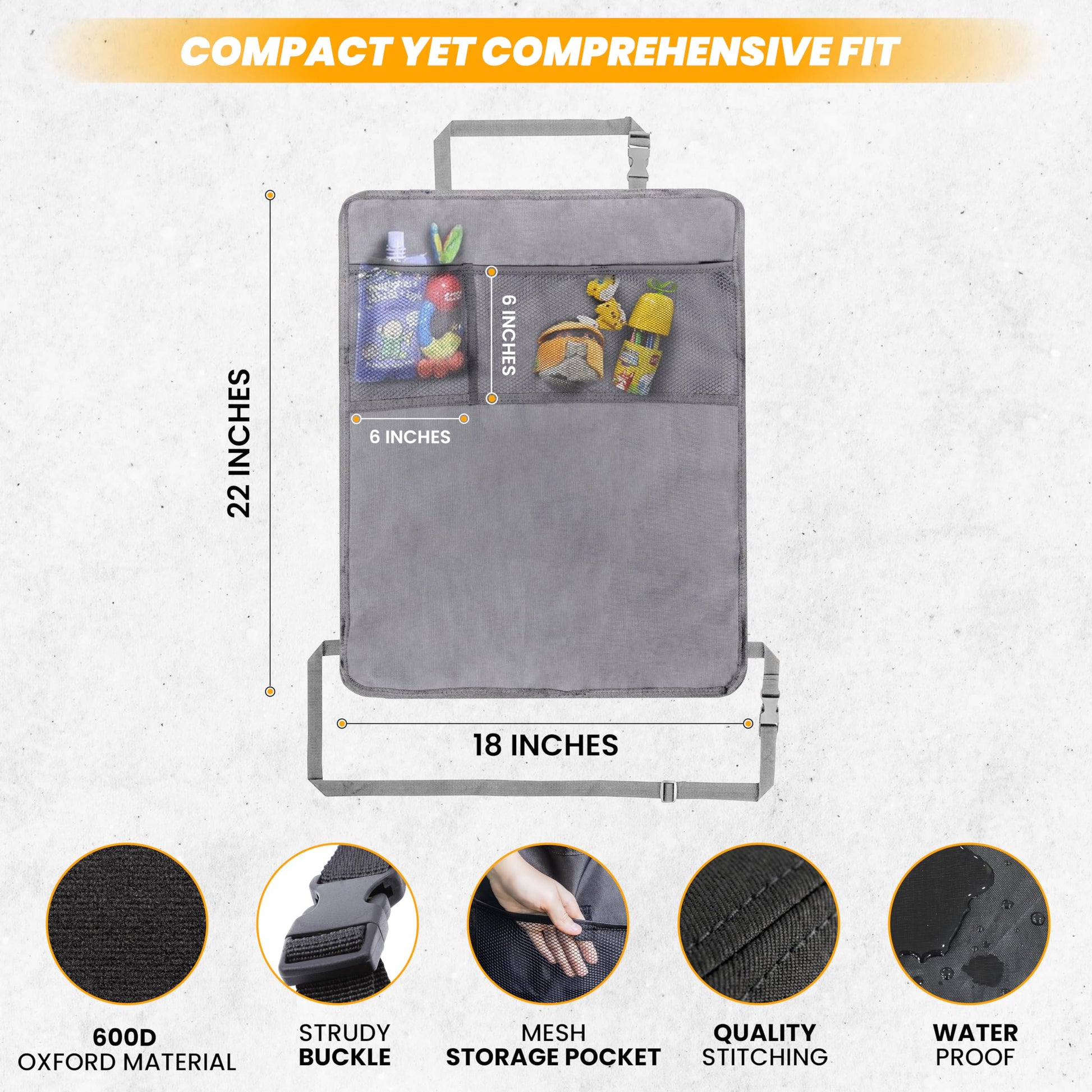 Back Seat Protector 2-Pack for Kids Feet (Grey) | EcoNour Car Kick Mat