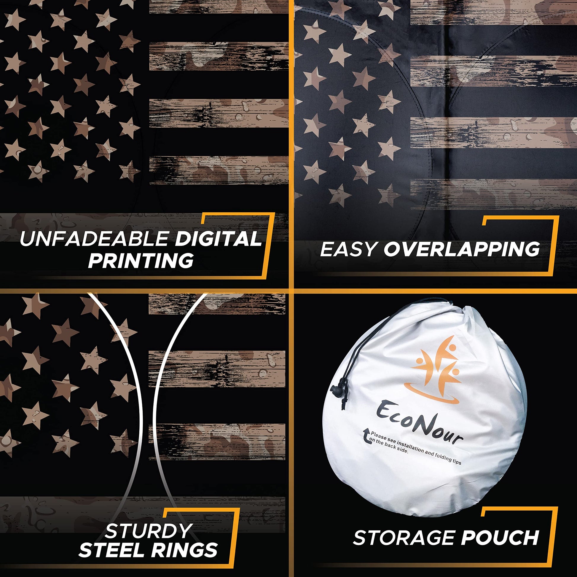 Camouflage American Flag Windshield Sun Shade (64"x33") | EcoNour