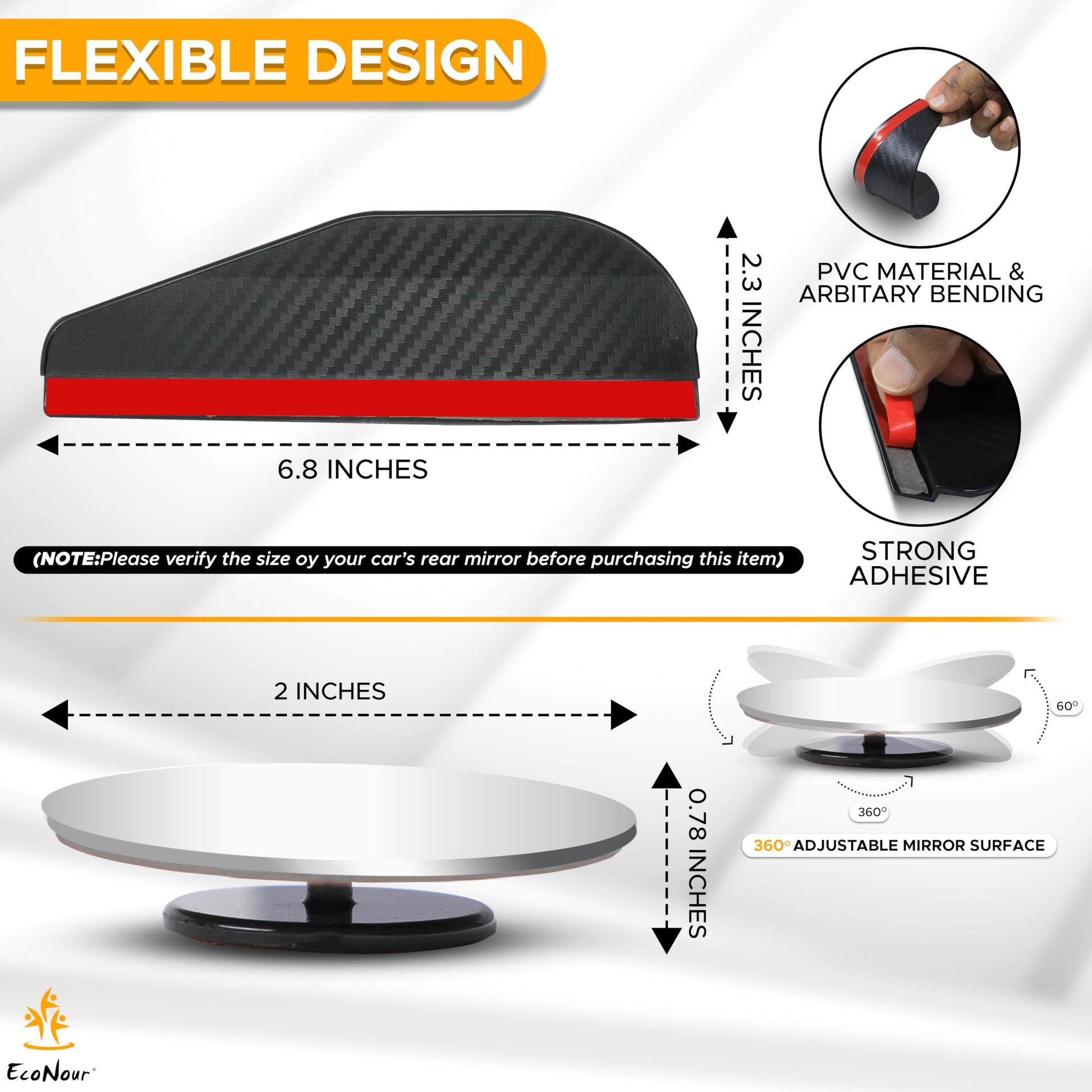 Car Blind Spot Mirrors (2 Pack) with Rain Visor | EcoNour 2" Round HD