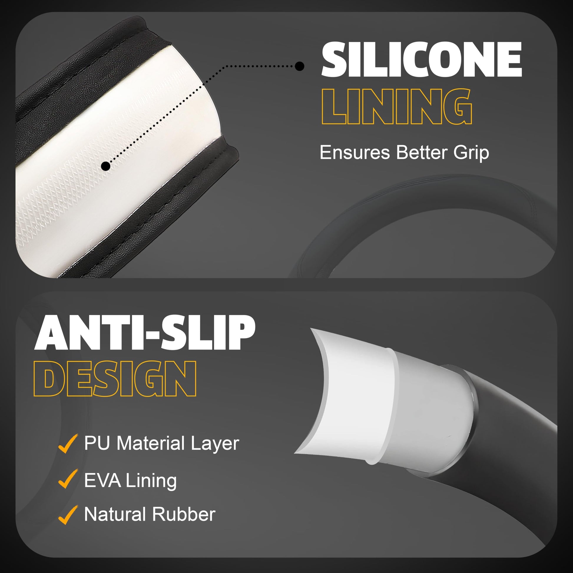 Car Steering Wheel Cover Black PU (14.5"-15") Fits Black | EcoNour