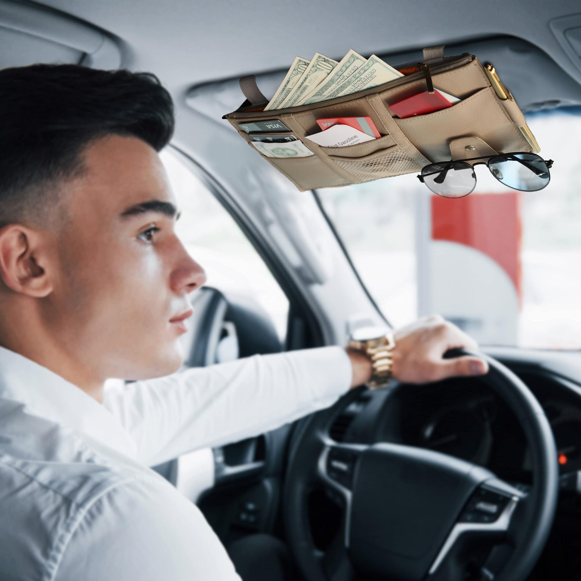 Car Sun Visor Organizer (Beige) Small | EcoNour Storage Pouch