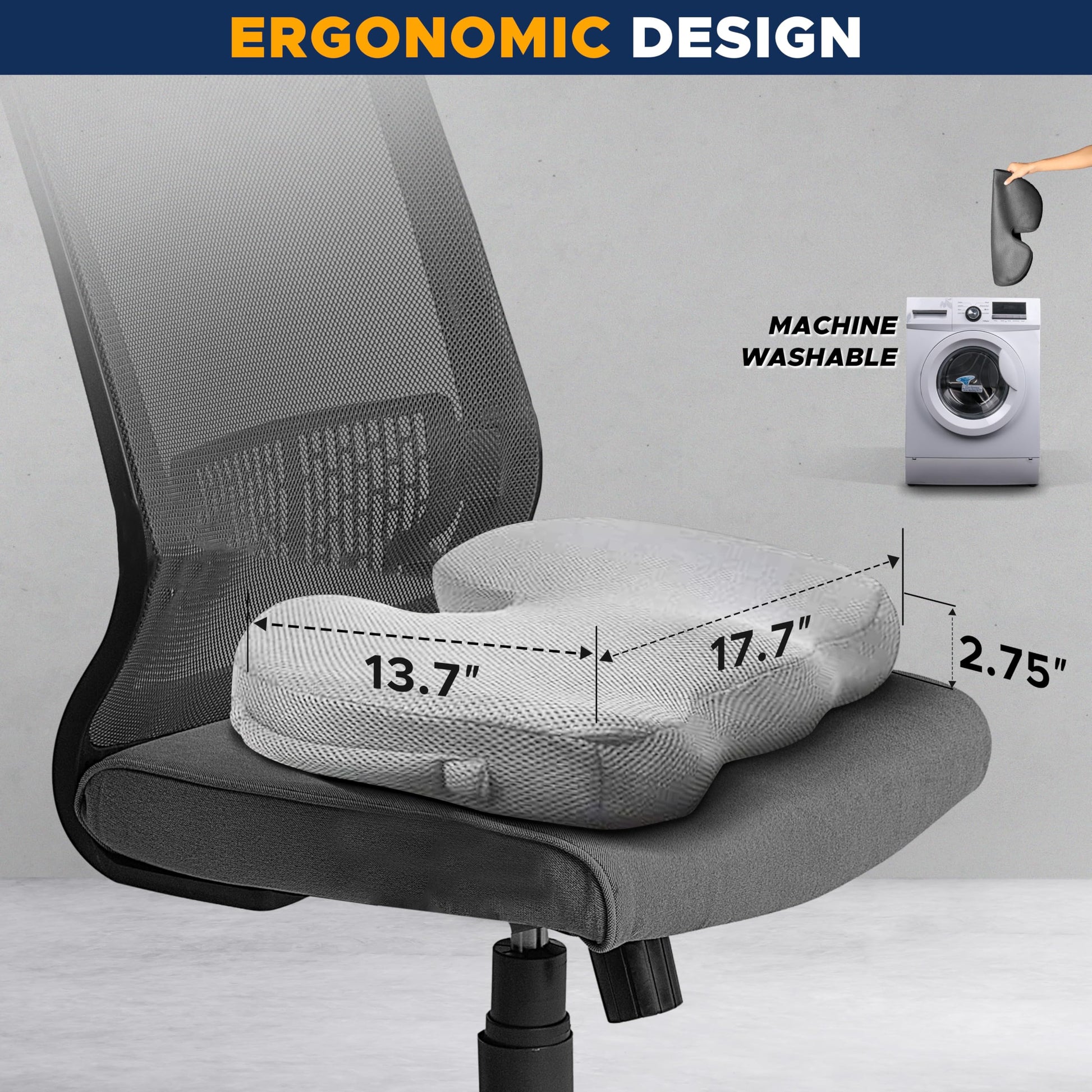 Gel Seat Cushion | EcoNour Coccyx Memory Foam Chair Cushion