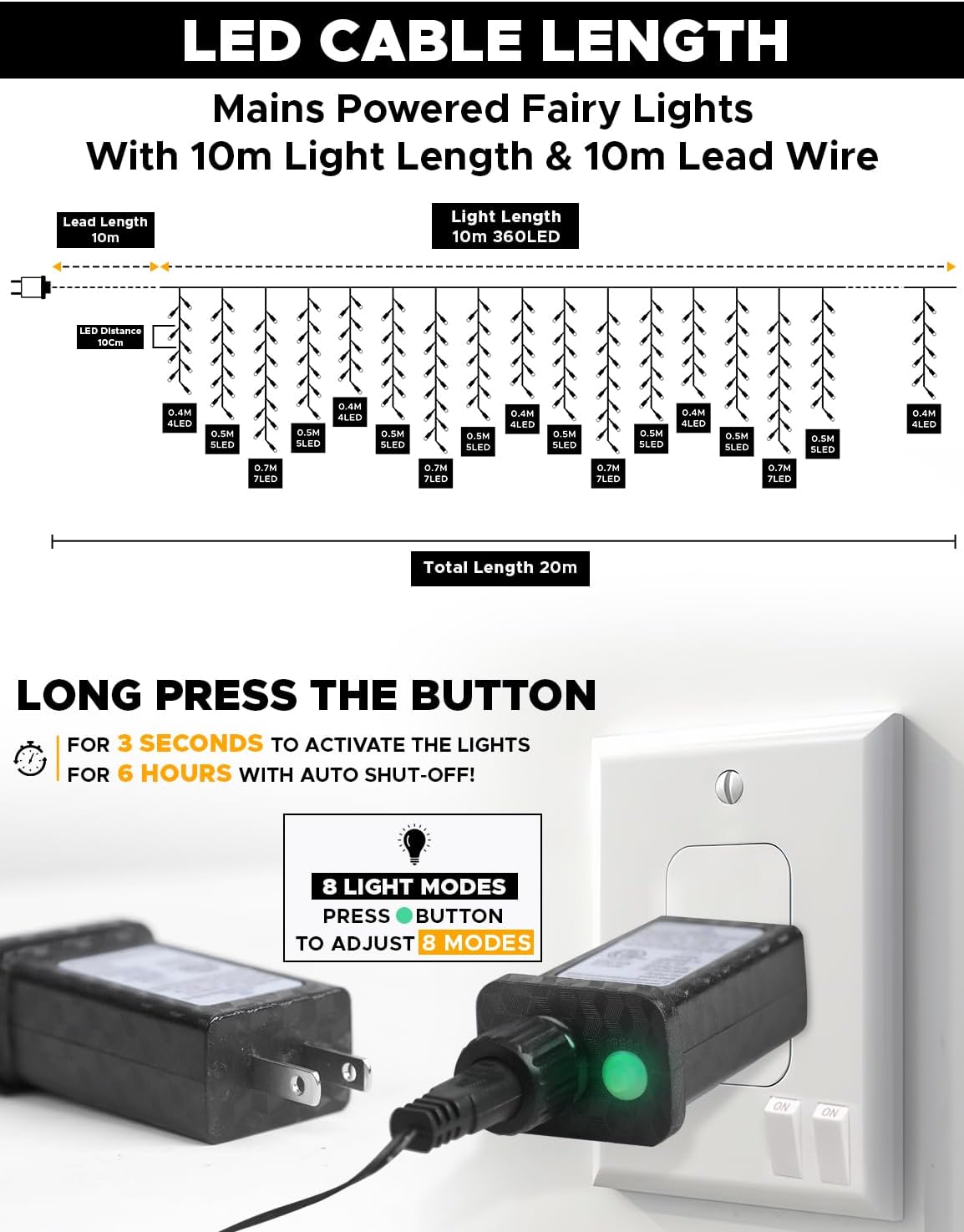 Icicle Christmas Lights Outdoor – EcoNour 360 LED Warm White